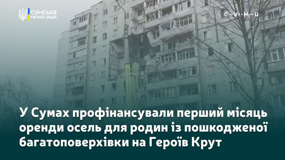 У Сумах забезпечують житлом відселених мешканців пошкодженої багатоповерхівки на Героїв Крут