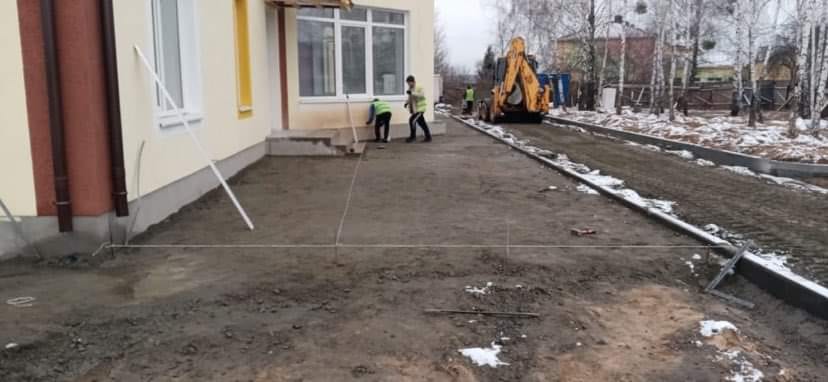 Фахівці підприємства завершують внутрішньооздоблювальні роботи у приміщеннях і разом з цим займаються благоустроєм території дитячого садка у селі Синяк Вишгородського району Київської області.